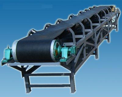皮帶式輸送機(jī)有兩種結(jié)構(gòu)形式,一種是上托輥為V形,皮帶形成V型輸送槽,不需擋邊板;另一種是托輥軸線與地面平行,皮帶為平面,皮帶需與擋邊板形成U型輸送槽。皮帶輸送機(jī)又有水平輸送和傾斜輸送(一般為提升)兩種輸送方式,還可以設(shè)計(jì)成可移動(dòng)式